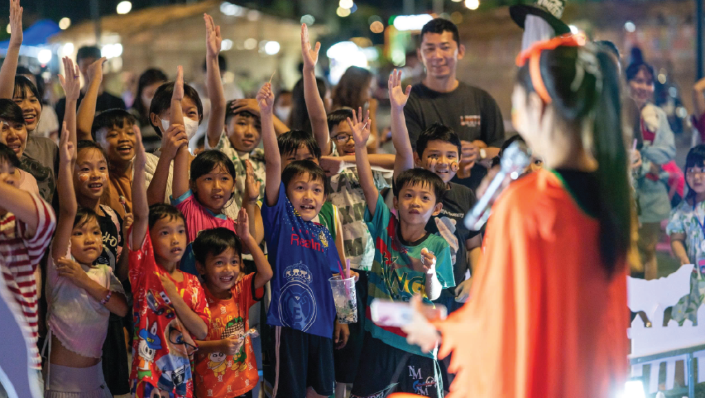 Lễ hội mang thông điệp quen thuộc nhưng đầy ý nghĩa: “Cho kẹo hay bị ghẹo” – nơi các bé hóa thân thành ma cà rồng, công chúa, xác ướp hay phù thủy nhỏ.