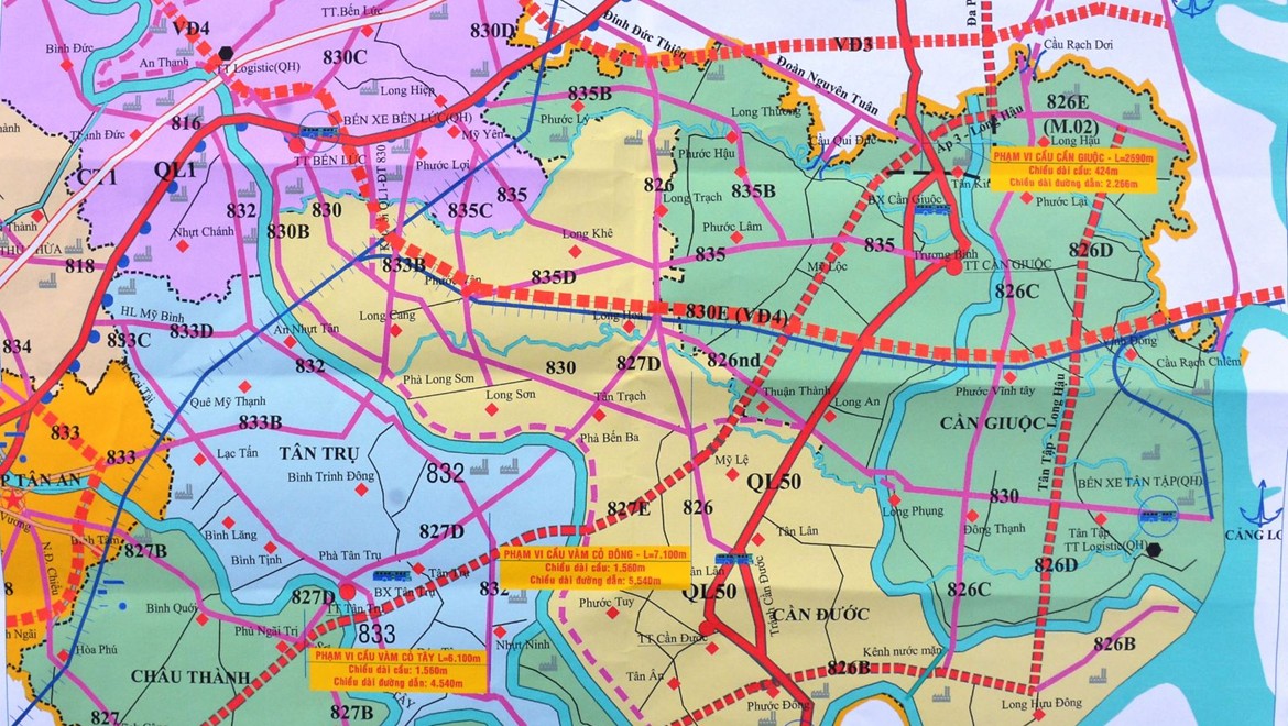 Theo Ban Quản lý Dự án Đầu tư Xây dựng Long An, dự án ba cây cầu thuộc tuyến đường tỉnh 827E đã được Thủ tướng phê duyệt, gồm: cầu Cần Giuộc, cầu Vàm Cỏ Đông và cầu Vàm Cỏ Tây. Dự kiến, toàn bộ dự án có tổng mức đầu tư hơn 4.797 tỷ đồng, với phần lớn là vốn vay ODA từ Hàn Quốc.
