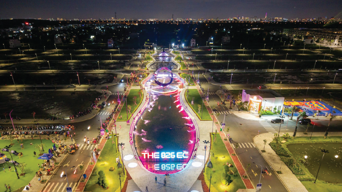 Với quy mô 15.3ha, The 826 EC không chỉ là dự án thương mại mà còn là một cộng đồng năng động. Hình ảnh kênh đào Hạnh Phúc được trang bị chiếu sáng, phun khói, tạo hiệu ứng huyền ảo đang trở thành biểu tượng mới của dự án.